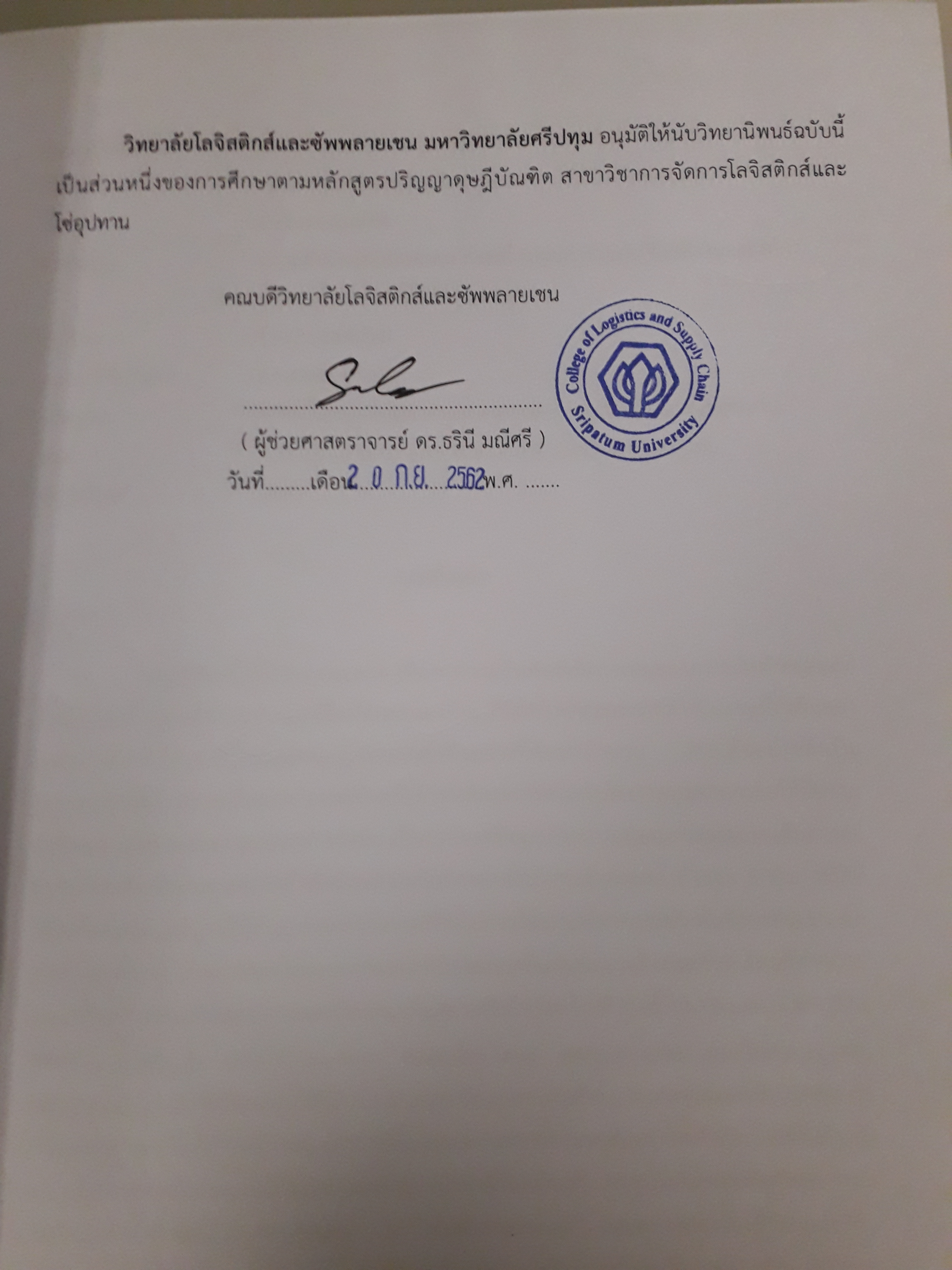 ปรัชญาดุษฎีบัณฑิตสาขาวิชาการจัดการโลจิสติกส์และโซ่อุปทาน วิทยาลัยโลจิสติกส์และซัพพลายเชน มหาวิทยาลัยศรีปทุม ปีการศึกษา 2561.
