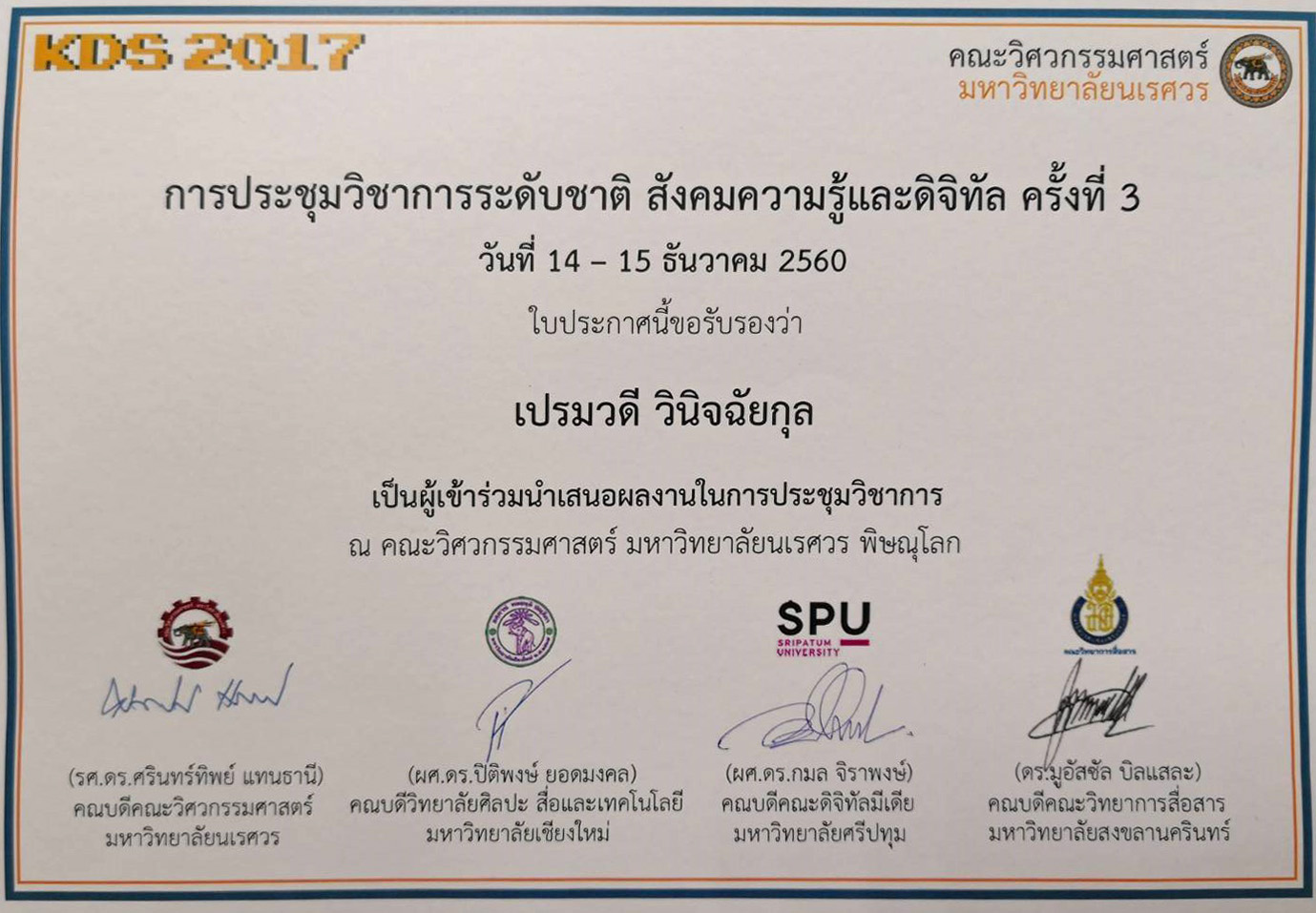 เปรมวดี วินิจฉัยกุล. (2560). กระบวนการสร้างสรรค์นิทานธรรมะเรื่องคาถาแห่งความสุข. การประชุมวิชาการระดับชาติ "สังคมความรู้และดิจิทัล 2560 ครั้งที่ 3. (น.55) พิษณุโลก: คณะวิศวกรรมศาสตร์ มหาวิทยาลัยนเรศวร.