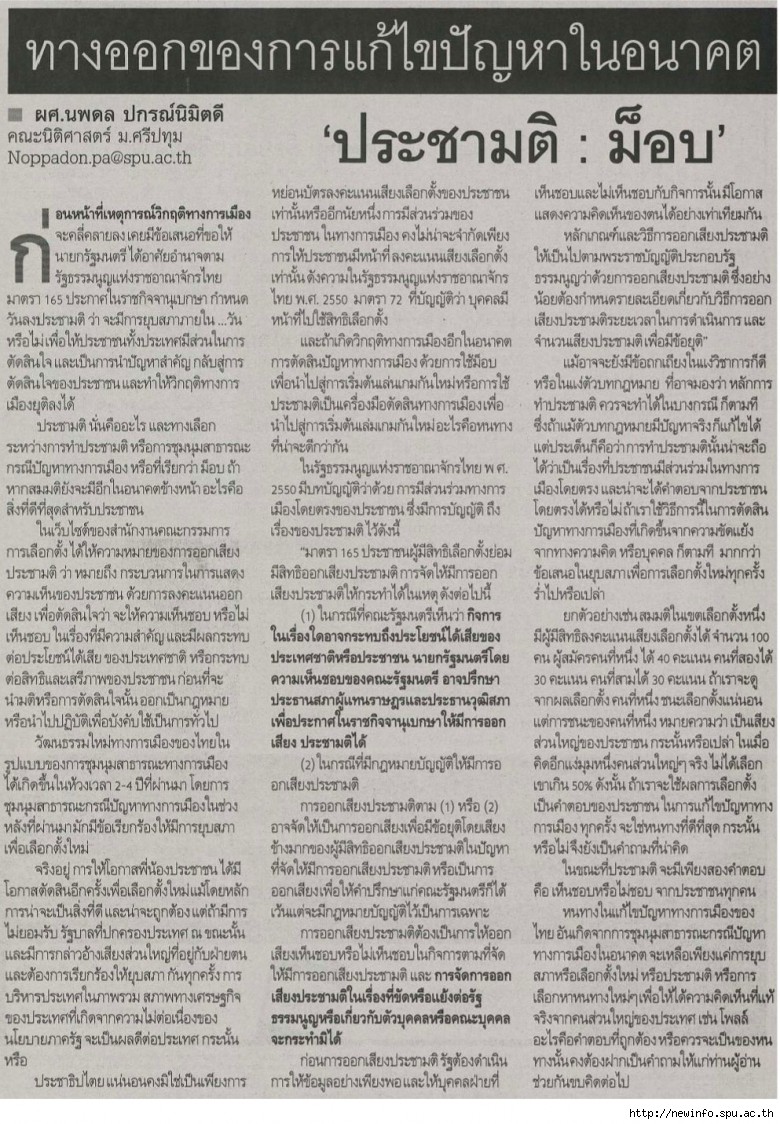 ทางออกของการแก้ไขปัญหาในอนาคต ประชามติ : ม็อบ