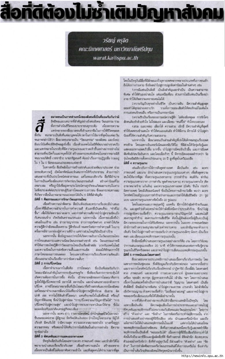 สื่อที่ดีต้องไม่ซ้ำเติมปัญหาสังคม